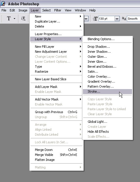 Passo 2 --> Vá em "Layer"(Camada) --> "Layer Style"(Estilo da Camada) --> "Stroke"(Traçado)